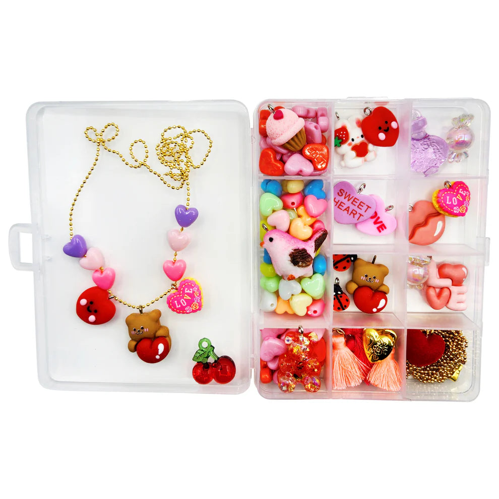 Love wins!!! This heart and love themed version of our best selling jewelry charm kit is perfect way to express friendship and spread your love year round! Each kit includes 9-11 assorted pendants, 1 brass heart locket, 4 tassel charms, assorted beads, and approximately 60" of gold plated ball chain and clasps which can be easily cut to desired length.  Makes 6-8 pieces of jewelry with extra parts to spare.  A great activity for kids to do together!