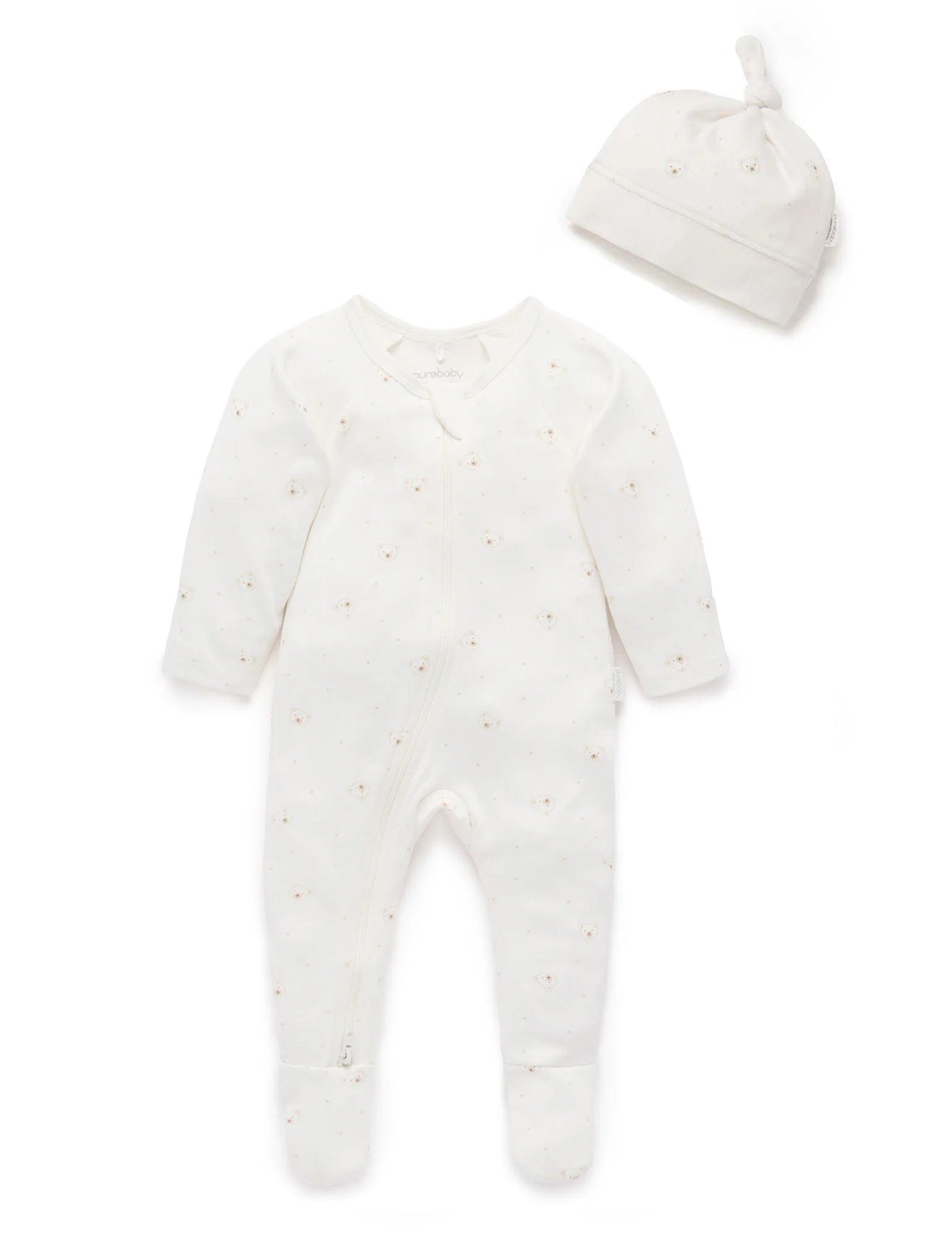 Our classic Essentials Zip Footie and Knot Hat Set is a baby wardrobe staple, designed for comfort and the easiest of dressing. Designed for day to night wear, our footies feature a two way zip with safety fold to protect their skin. With long sleeves, inbuilt feet and optional turn-over mittens, your newborn will be kept covered and warm. Our Knot Hat with rib band is designed to be adjustable, simply adjust the length by re-tying. Made from the softest 100% Organic Cotton for a soft and gentle touch against your baby's delicate skin.